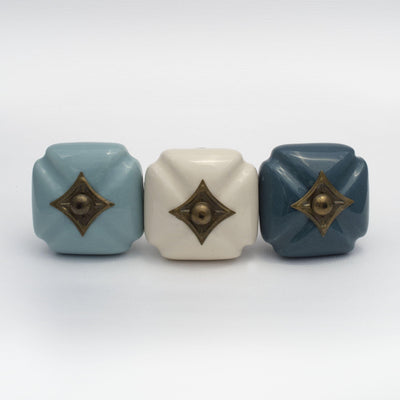 Ceramic Euro Drawer Knob, a classic and beautiful vintage dresser knob. It would also be perfect as kitchen cabinet pulls. Now available in three beautiful colors, light blue, creme, and dark teal. Vintage look, quality made.