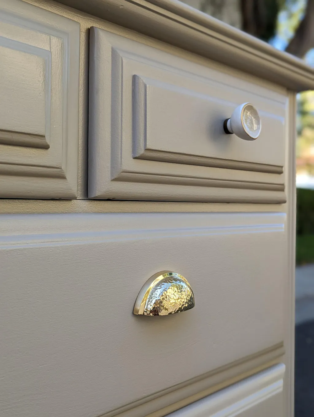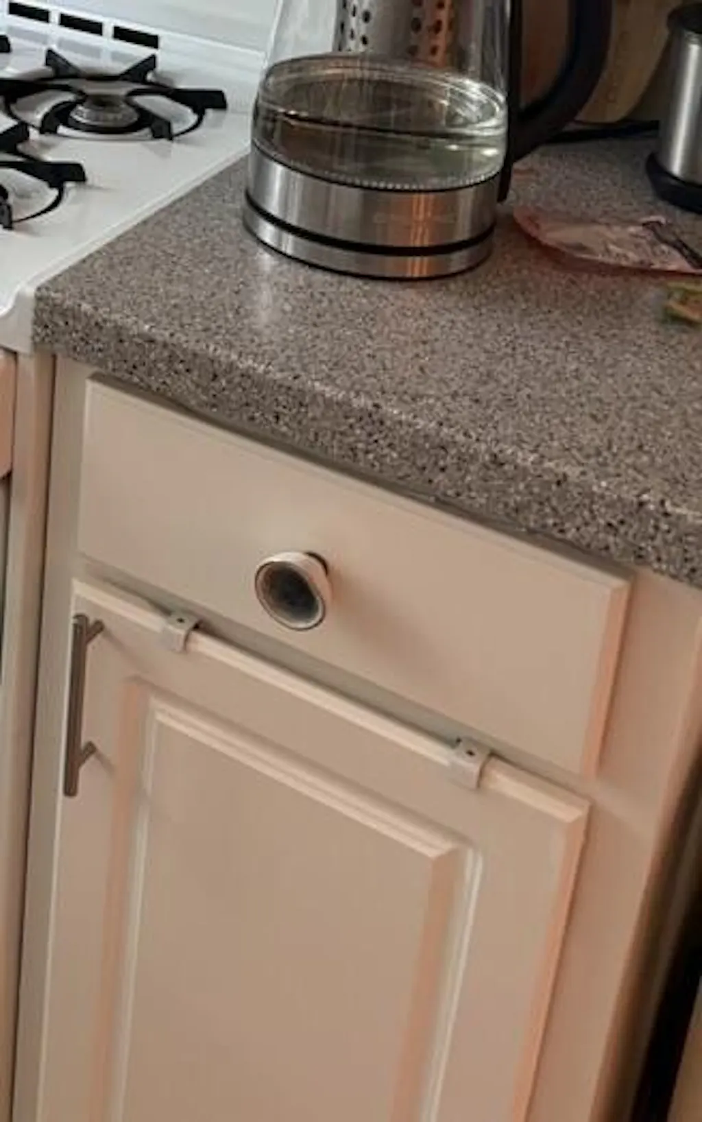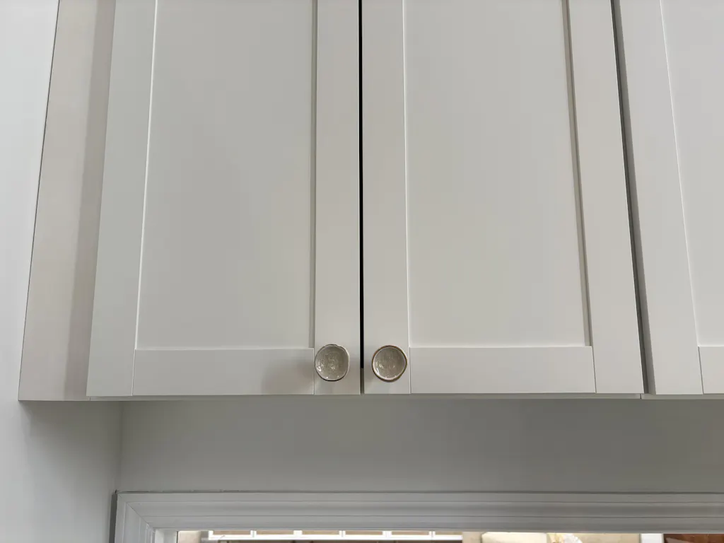 These sea glass knobs completely elevate my white kitchen cabinets. They are so beautifully unique with the gold rim and translucent cream color in the middle make them stand apart from any other cabinet knob.